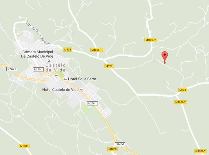 coordenadas para colocar no GPS: 39°24'54.6"N 7°26'16.4"W ou 39.415167, -7.437889. Ver mapa: